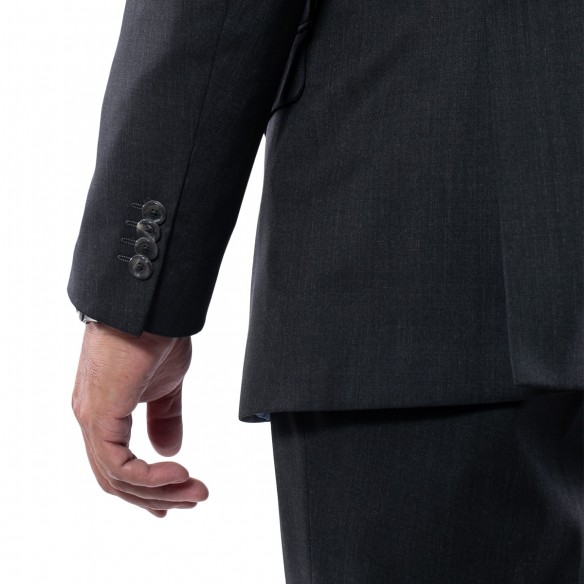 Abito realizzato in lana con 2 bottoni. Tasche con pattina + taschino. 2 spacchi posteriori. Chiusura frontale con abbottonatura monopetto.