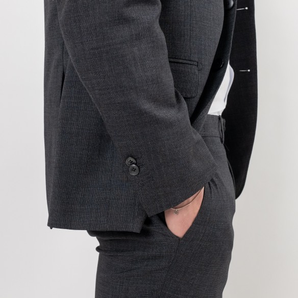 Abito monopetto grigio in lana microfantasia