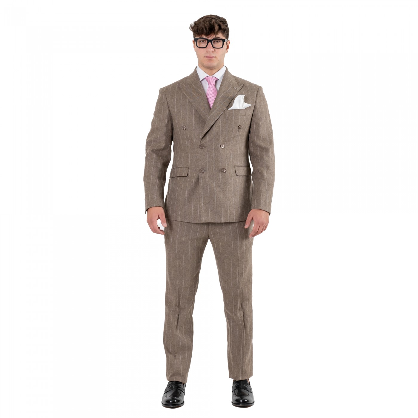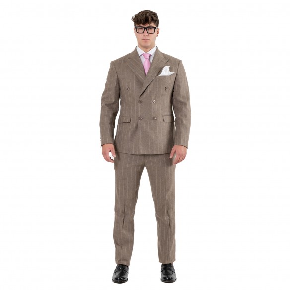 Giacca doppio petto gessata in lana cammello