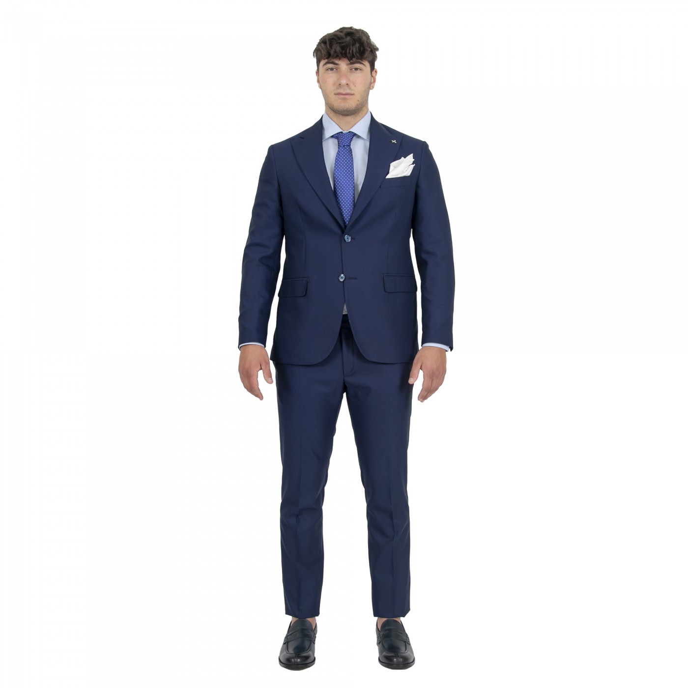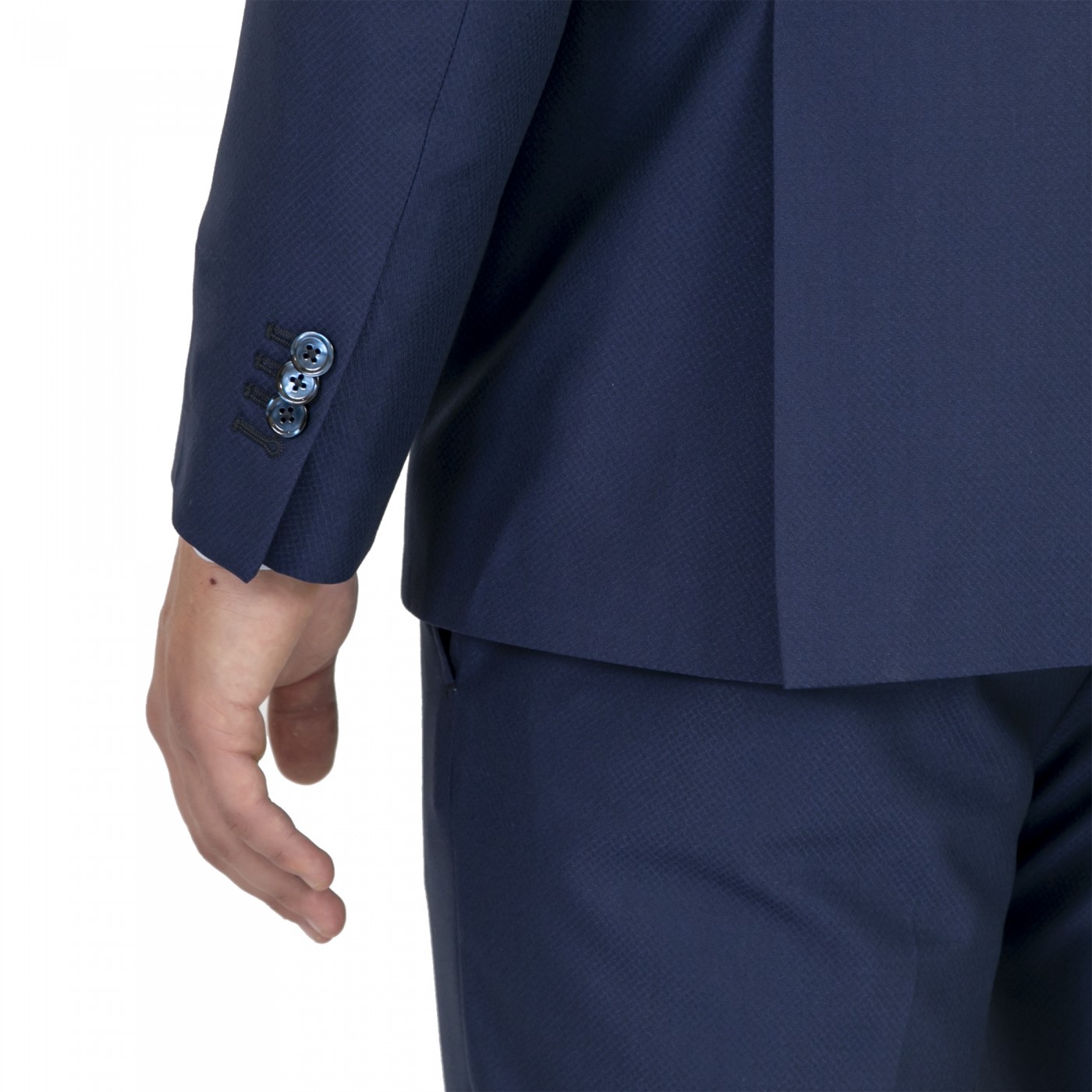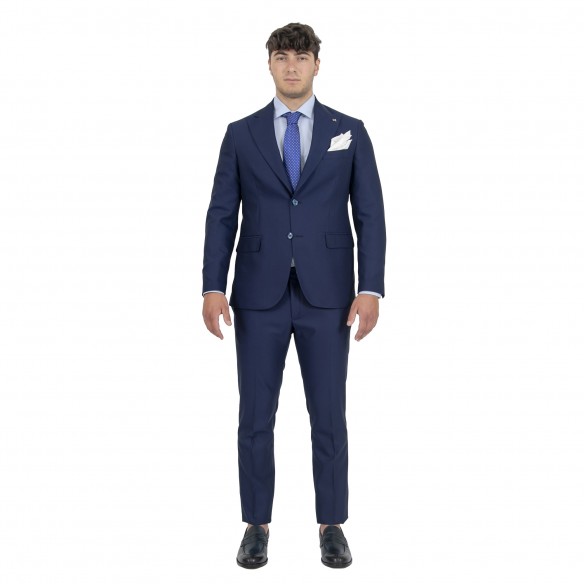 Abito doppio petto 2 spacchi, 2 pattine + taschino , due tasche interne