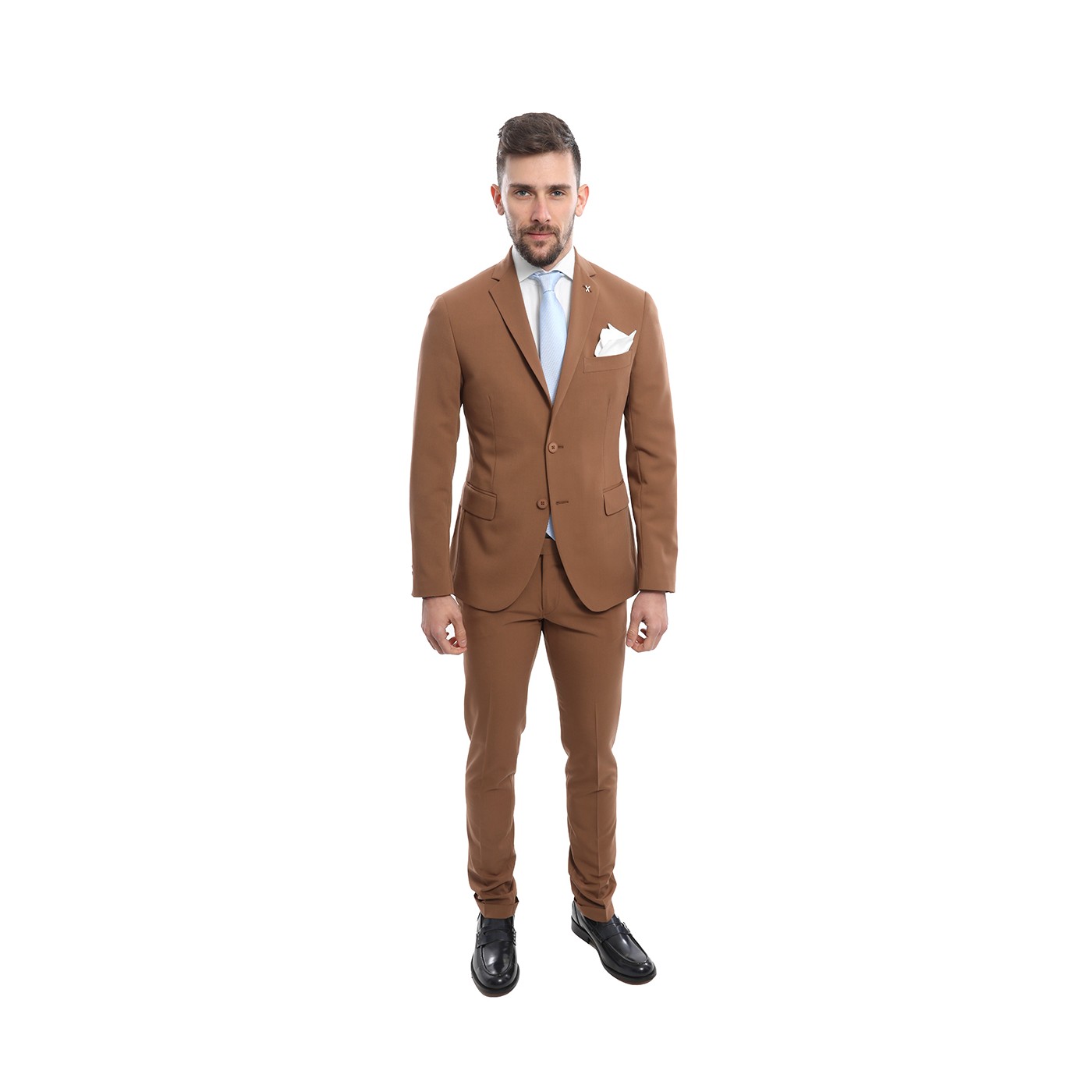 Abito monopetto con rever a lancia, sinonimo di eleganza e raffinatezza. La giacca, caratterizzata da una chiusura a due bottoni, presenta un rever a lancia che conferisce un tocco di formalità e modernità, allungando visivamente la silhouette. Realizzato con tessuti di alta qualità, come lana o misto lana, l'abito offre una vestibilità impeccabile e un comfort duraturo. Perfetto per cerimonie, eventi formali o occasioni speciali, rappresenta un equilibrio ideale tra tradizione sartoriale e stile contemporaneo.