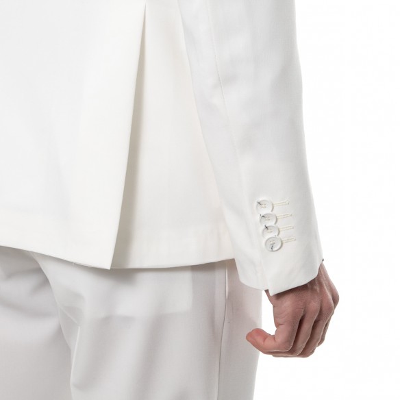 Blazer petto a lancia e polsino con bottoni . Tasche con patta sui fianchi e taschino interno funzionale. Orlo con spacchi laterali. Chiusura frontale con abbottonatura.