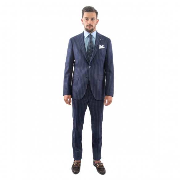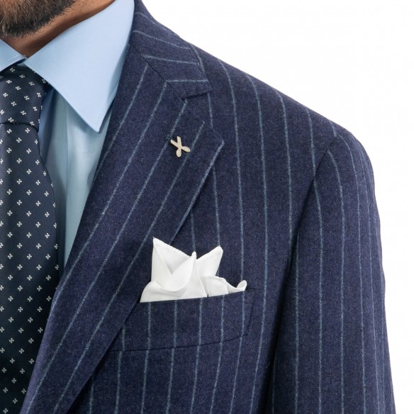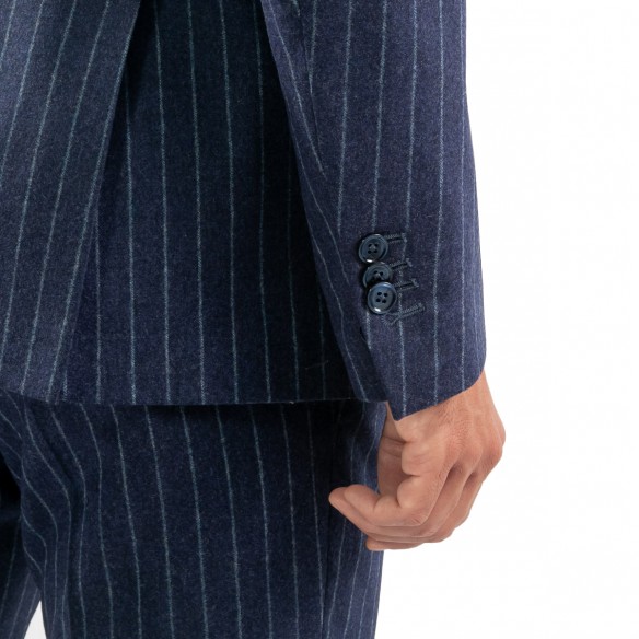 Abiti realizzato in lana foulè foderato. Tasche con patta sui fianchi e dettaglio di taschino interno funzionale, due spacchi posteriori. Chiusura frontale con abbottonatura monopetto.