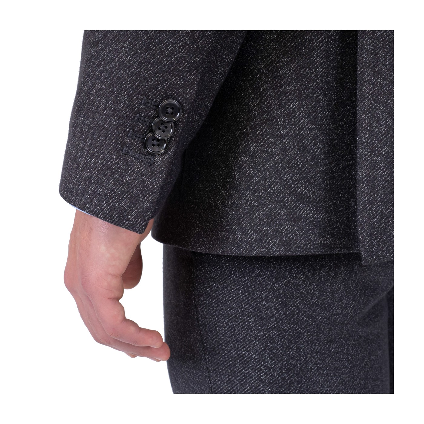 Caratteristiche tipiche di un abito sartoriale grigio 100% lana includono: