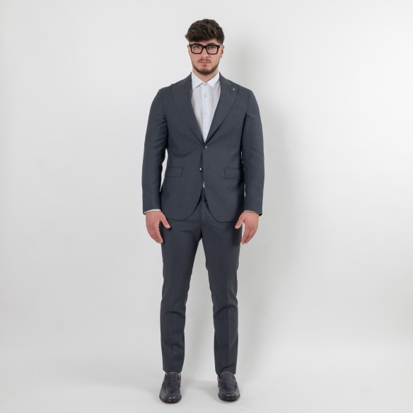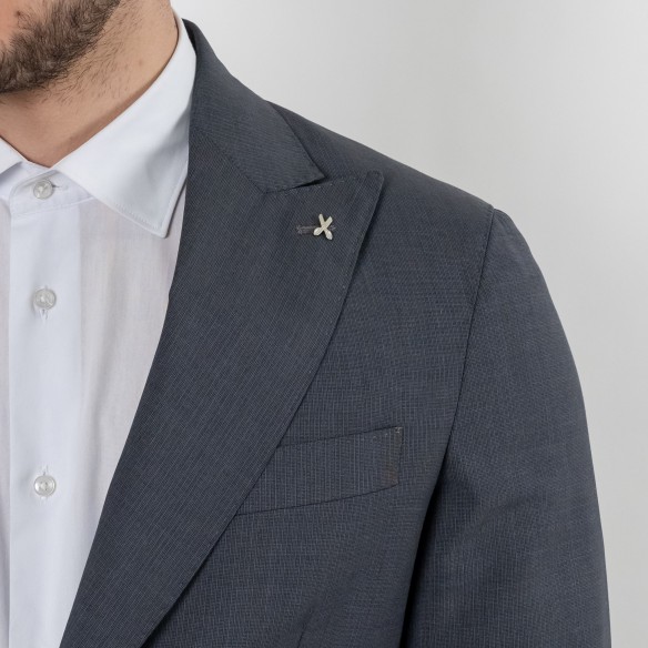 Abito realizzato in lana di tasmania sfoderato. Due bottoni Tasche con pattina sui fianchi e dettaglio di taschino interno funzionale, due spacchi posteriori.