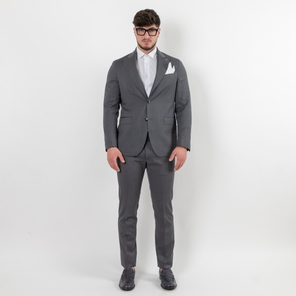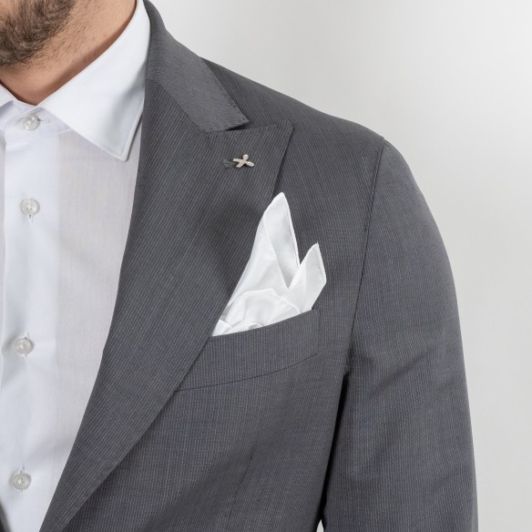 Abito realizzato in lana di tasmania sfoderato. Due bottoni Tasche con pattina sui fianchi e dettaglio di taschino interno funzionale, due spacchi posteriori.