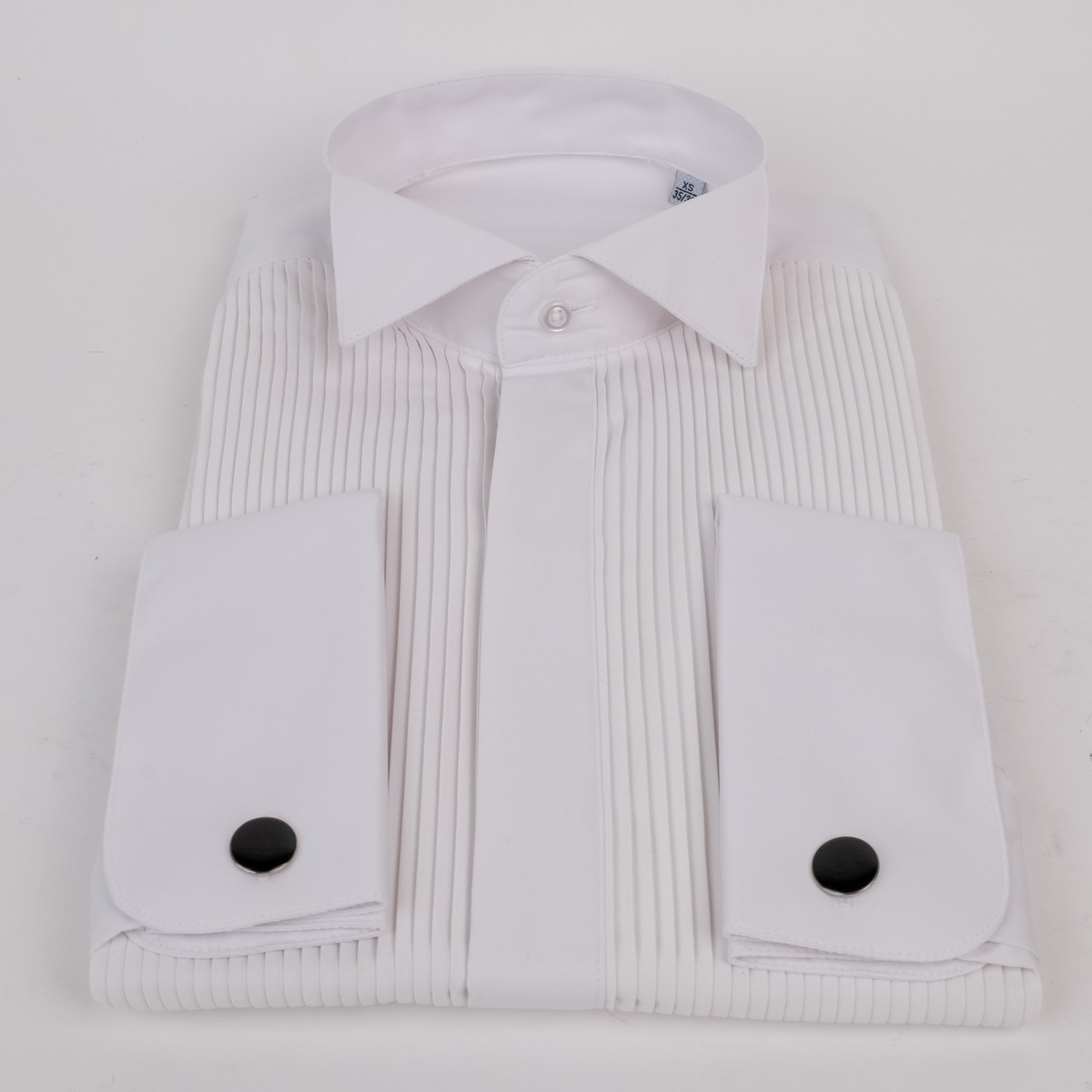 Camicia formale di alta qualità, impreziosita da un raffinato plissé frontale che conferisce al capo un’eleganza classica e senza tempo. Il collo Cavour, distintivo e ricercato, si abbina perfettamente all’abbottonatura a scomparsa, per un look pulito e sofisticato. Il polso doppio (da gemelli) sottolinea la vocazione cerimoniale della camicia, rendendola ideale per occasioni formali e serate di prestigio. Un capo sartoriale che unisce tradizione e stile con cura nei minimi dettagli.