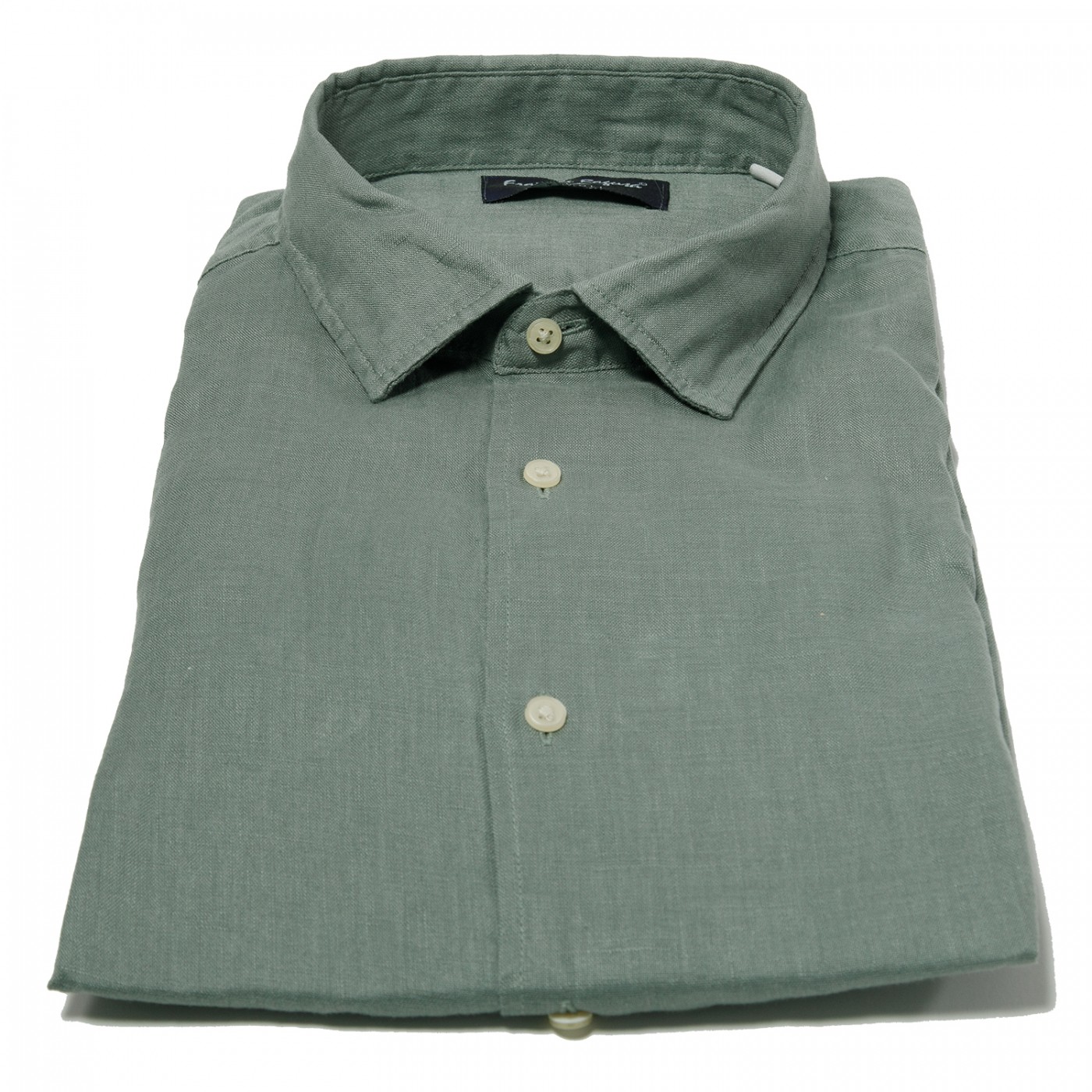 Camicia di lino verde classica con maniche lunghe, bottone semplice