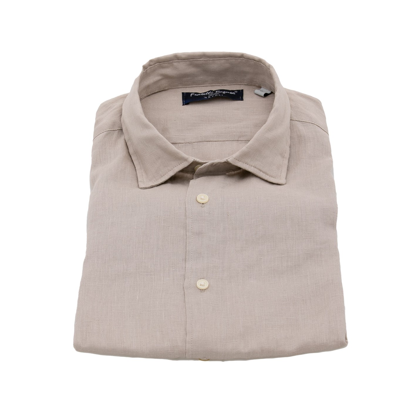 Camicia di lino beige classica con maniche lunghe, bottone semplice