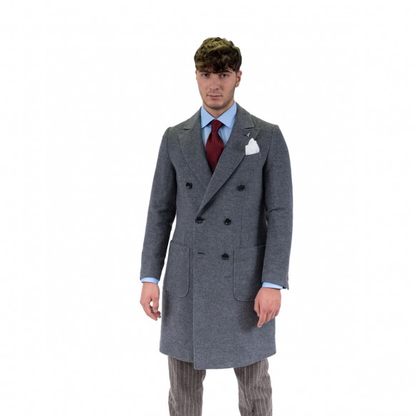 Cappotto doppio petto rever a lancia ,tasche a toppa + taschino in petto