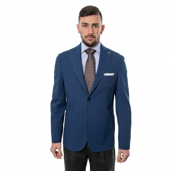 chiusura frontale monopetto sfoderata. Tessuto effetto maglia