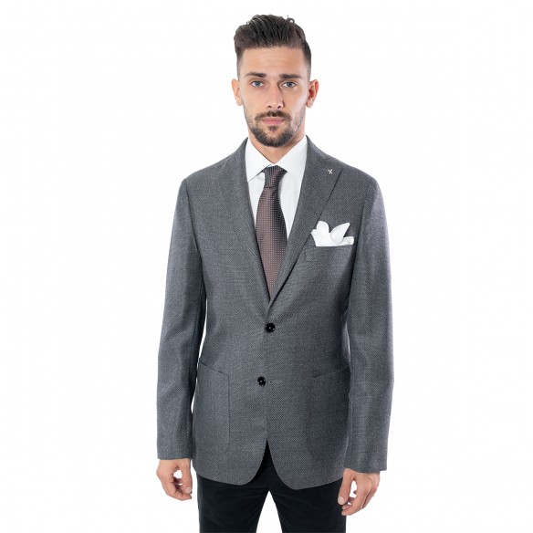 Giacca 2 bottoni , 2 spacchi, 2 toppe più taschino , mezza fodera.Drop.6COMPOSIZIONE