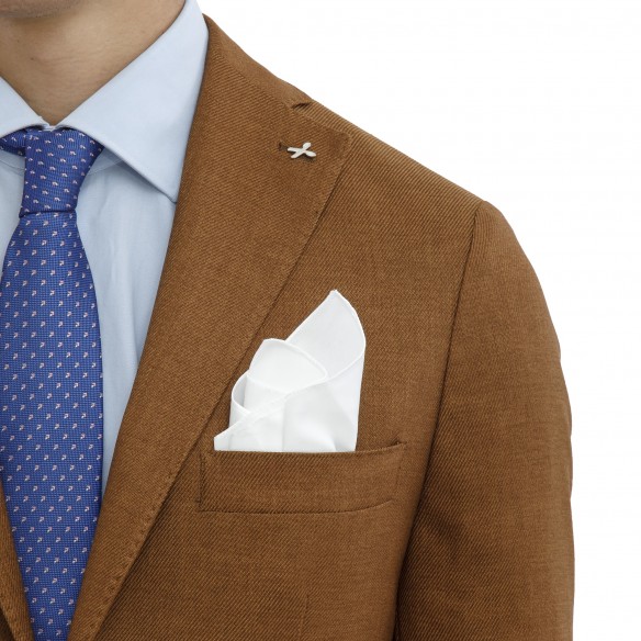 Giacca monopetto da uomo realizzata in 100% lana, ideale per la stagione autunno/inverno, caratterizzata da un’elegante tonalità marrone che dona luminosità e modernità al look.