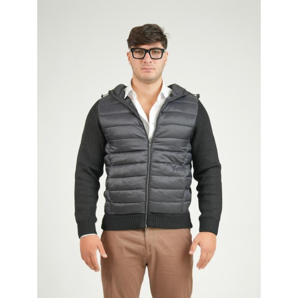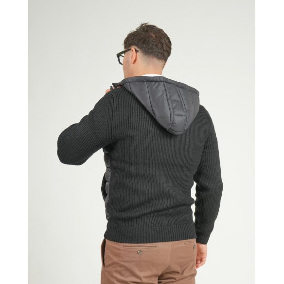 Versatile, moderna e funzionale: questa maglia ibrida con zip e cappuccio combina la morbidezza della maglieria con la protezione di un piumino leggero. Il corpo è realizzato in tessuto trapuntato imbottito, mentre maniche, fondo e schiena sono in maglia a costine per un comfort ottimale e una perfetta aderenza.