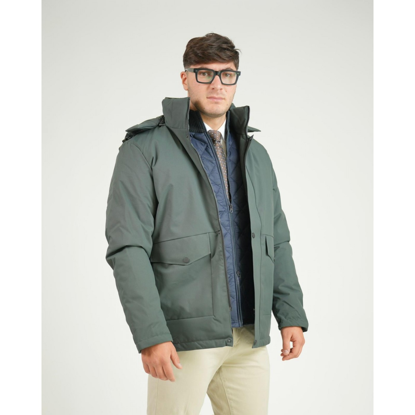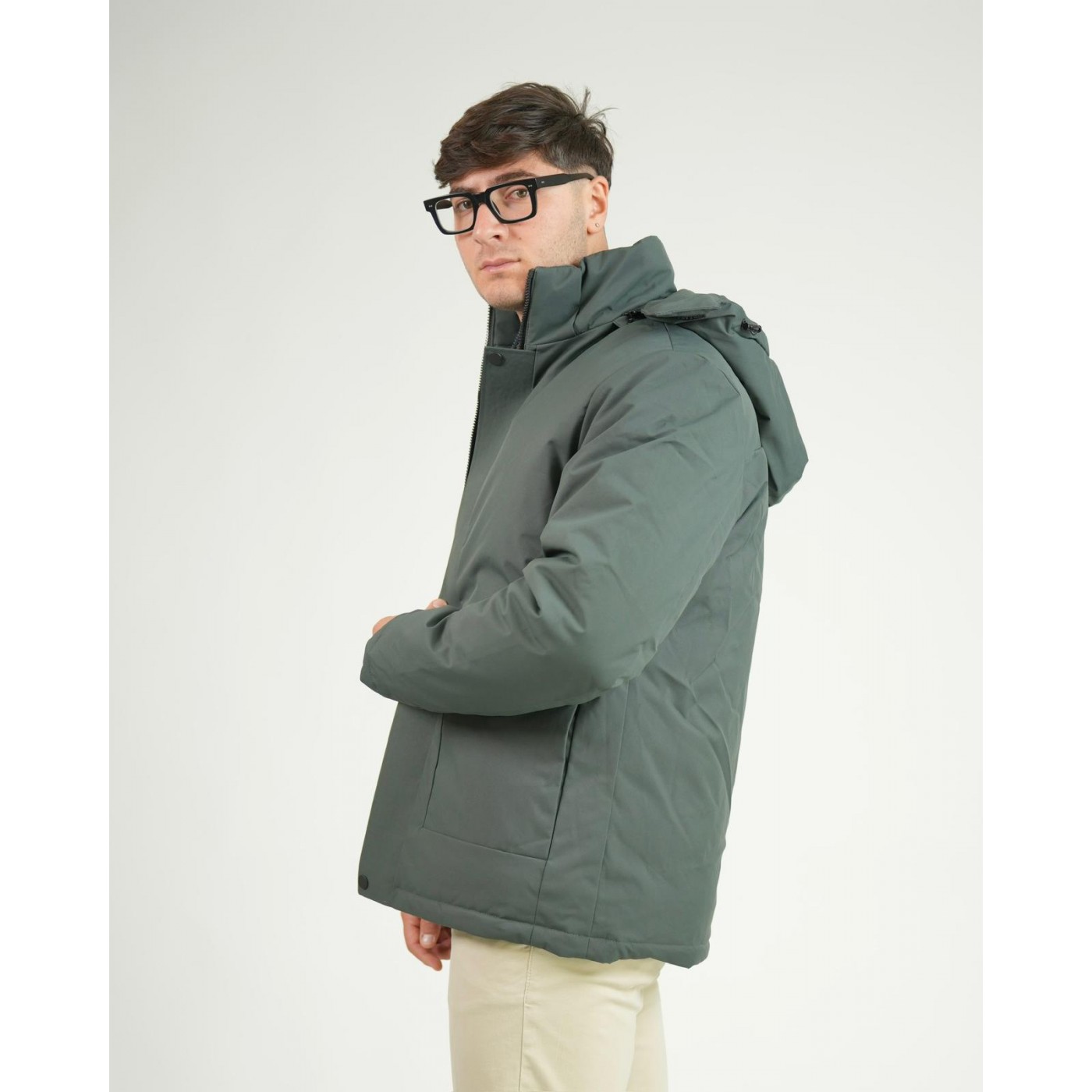 Il colletto alto assicura protezione aggiuntiva, mentre il cappuccio estraibile consente di adattare il capo alle diverse esigenze d'uso.
