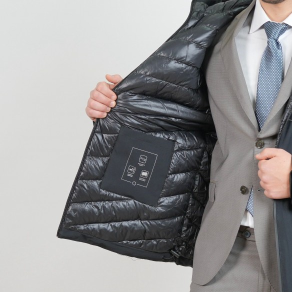 Il colletto alto assicura protezione aggiuntiva, mentre il cappuccio estraibile consente di adattare il capo alle diverse esigenze d'uso.