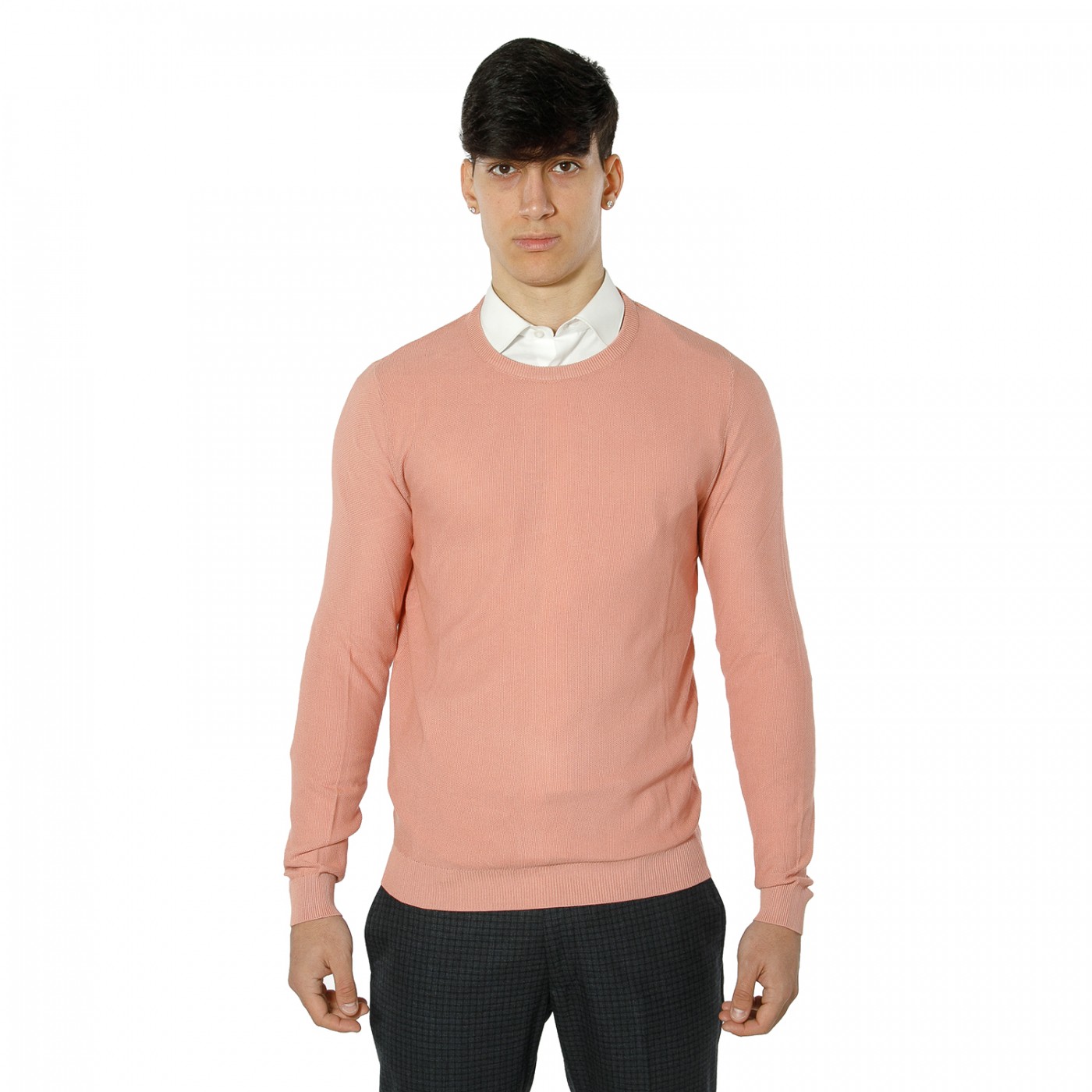 - Girocollo classico, ideale per un look pulito e sobrio.