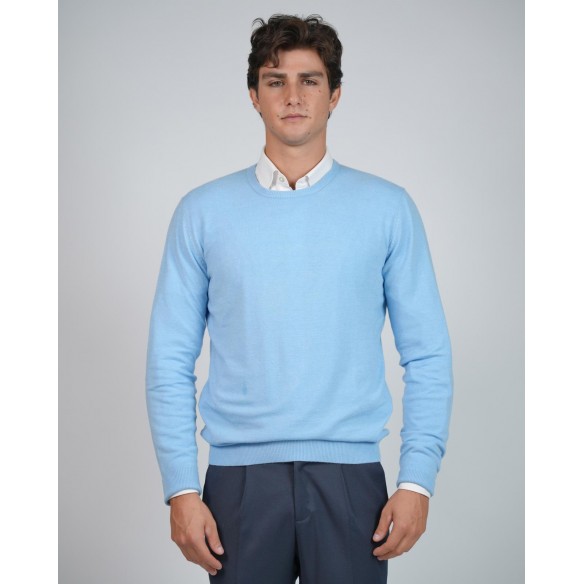 Maglia girocollo lana e cashmere - Celeste