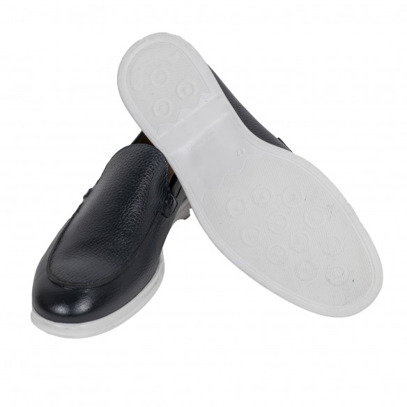 Mocassino rilassato in pellame bottolato , con suola in gomma bianca antiscivolo a contrasto