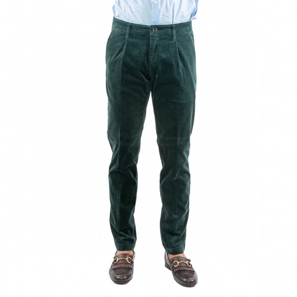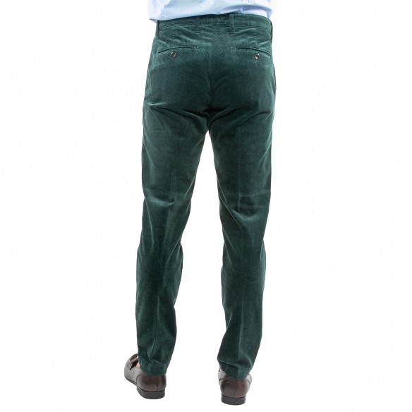 Pantalone verde inglese a coste in velluto ed elastan con una pince