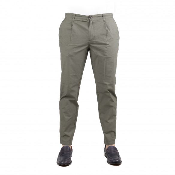 Pantalone elasticizzato verdeuna pinceregular fit tasca america e due tasche posteriori. Chiusura frontale con cerniera e abbottonaturaMade in Italy