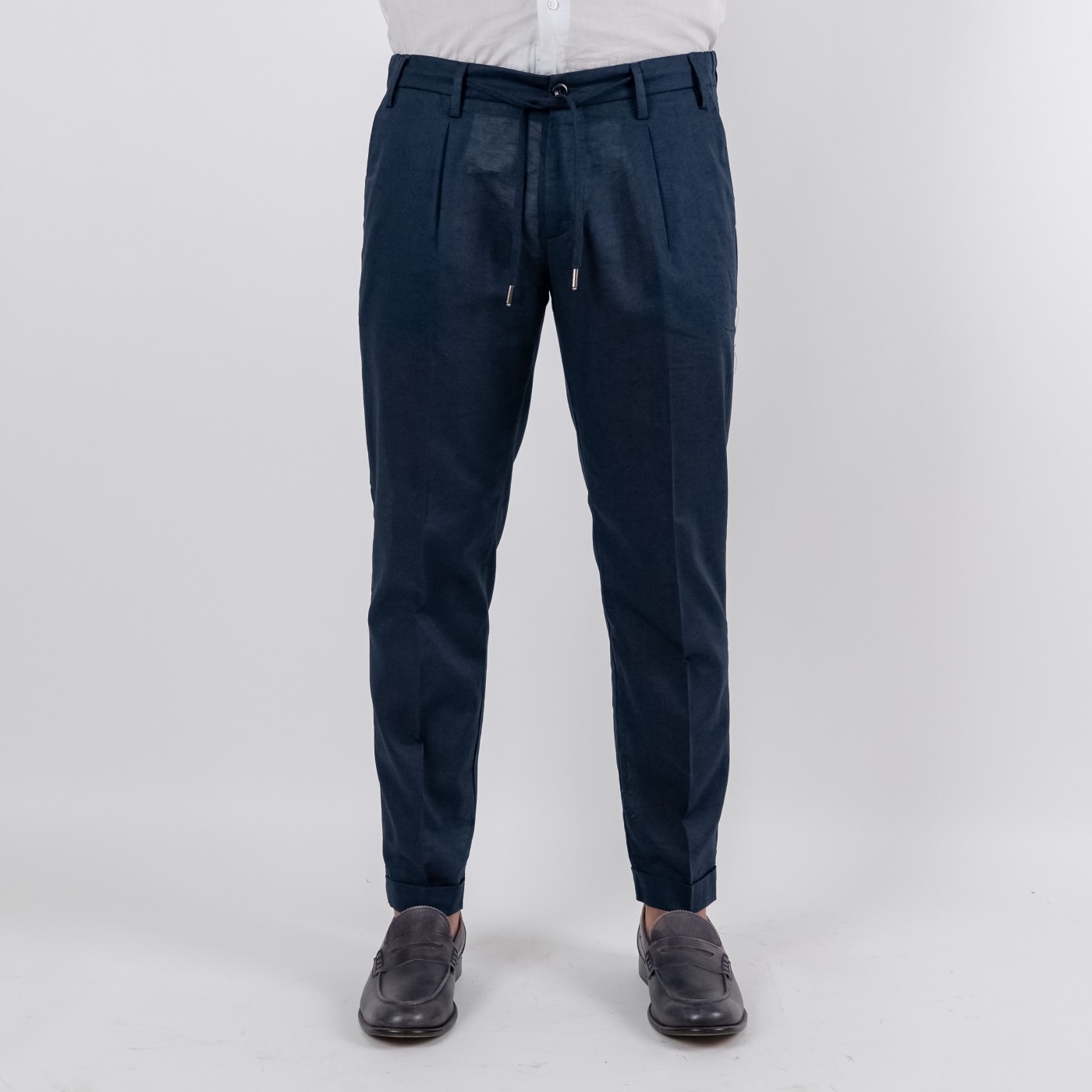 Pantalone dal taglio sartoriale realizzato in 100% lino, perfetto per le giornate più calde grazie alla sua leggerezza e traspirabilità. Caratterizzato da una singola pince frontale che aggiunge volume e comfort senza rinunciare all’eleganza, e da un fondo con risvolto che dona un tocco contemporaneo e curato. Vita regolare, chiusura con bottone e zip e laccio , tasche laterali oblique e tasche posteriori a filetto. Ideale per un look estivo raffinato, sia casual che formale.