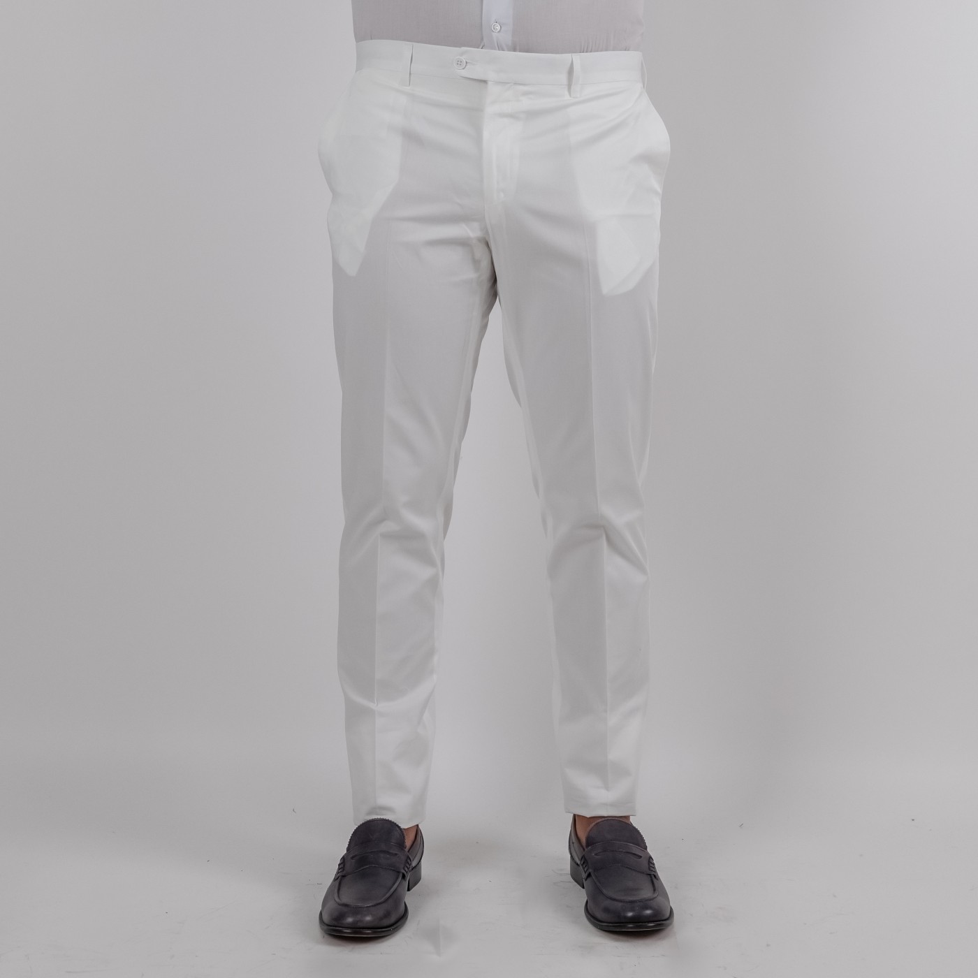 Pantalone estivo dal taglio pulito, realizzato in 100% cotone per garantire freschezza, traspirabilità e comfort in ogni momento della giornata. Il colore bianco esalta la linea essenziale del capo, rendendolo perfetto sia per outfit casual che per abbinamenti più eleganti. Presenta tasche laterali stile America, discrete e funzionali, e una vestibilità regolare pensata per valorizzare la silhouette con naturalezza. Un capo intramontabile, ideale per la stagione calda.