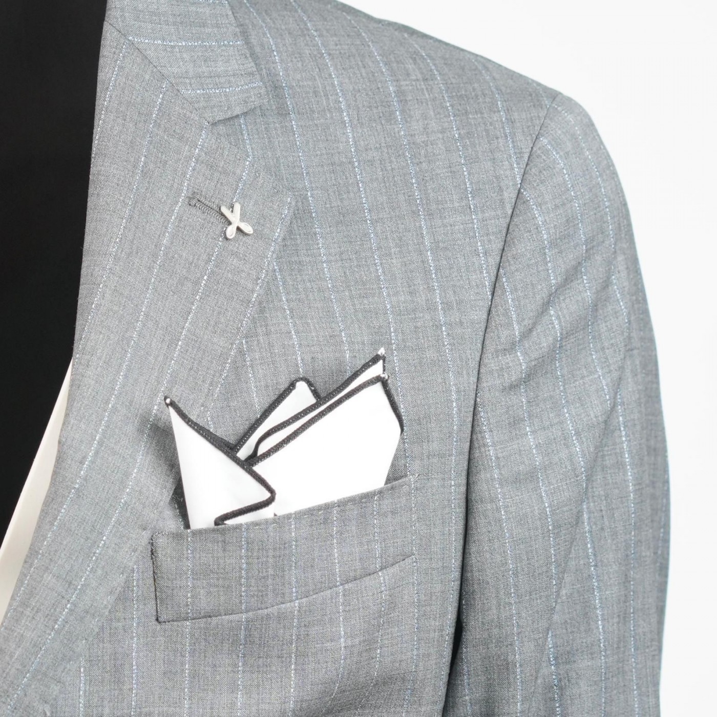Ripiegata con cura nel taschino della giacca, la pochette lascia intravedere il bordo colorato, aggiungendo un accento sofisticato e coordinabile con cravatta, papillon o altri dettagli dell’abbigliamento.