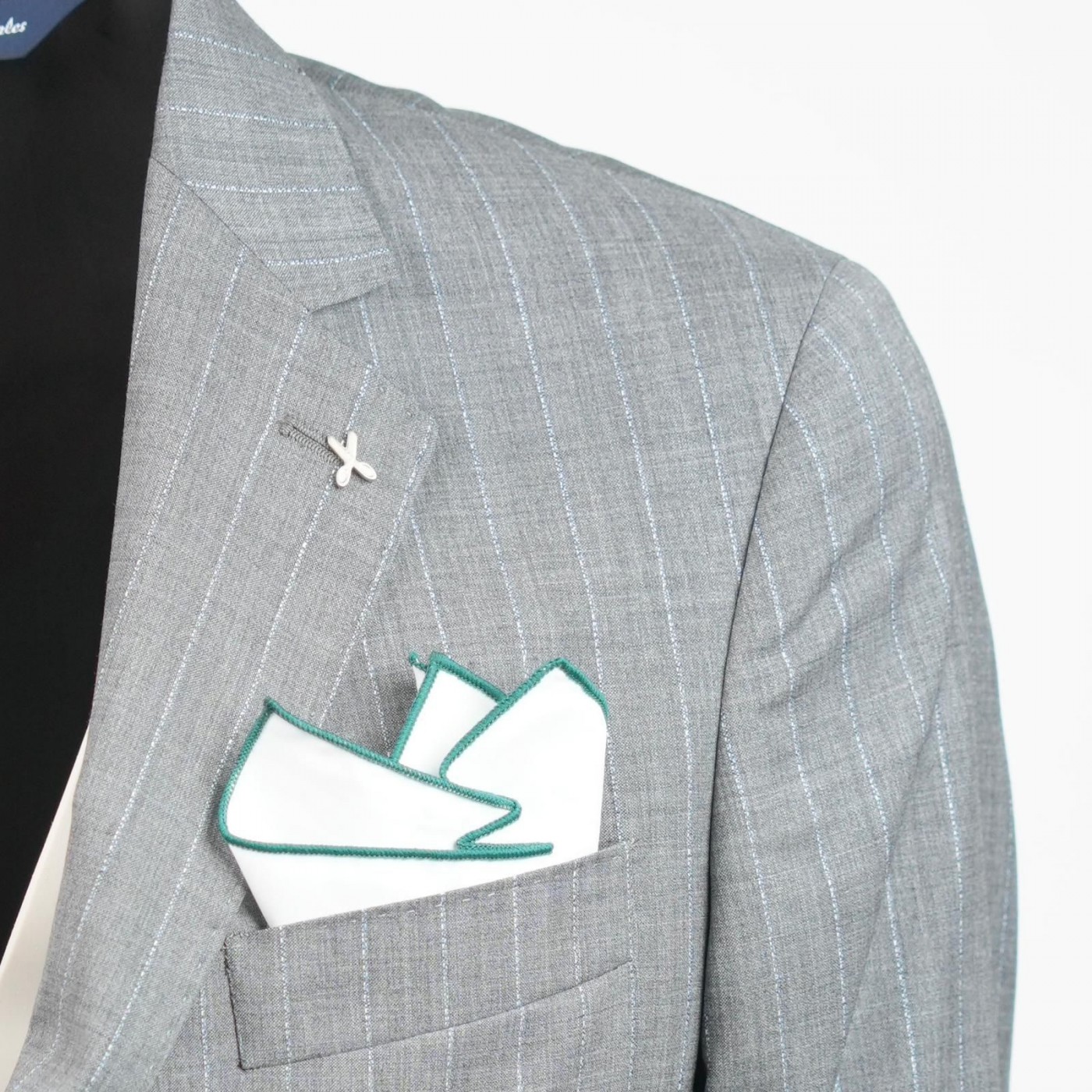 Ripiegata con cura nel taschino della giacca, la pochette lascia intravedere il bordo colorato, aggiungendo un accento sofisticato e coordinabile con cravatta, papillon o altri dettagli dell’abbigliamento.