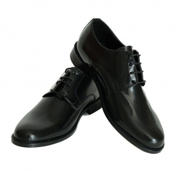 Scarpe modello derby con allacciatura aperta davanti.