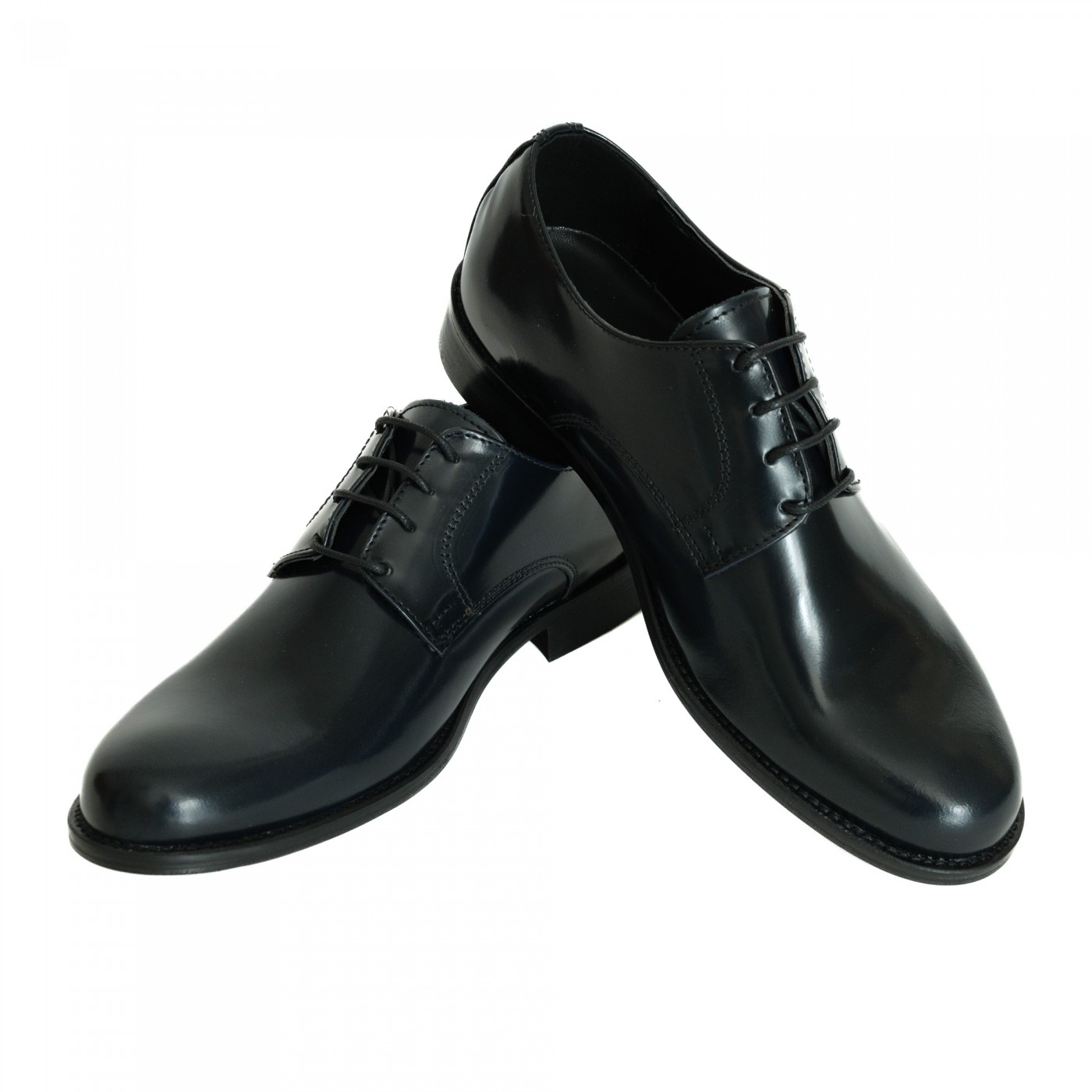 Scarpe modello derby con allacciatura aperta davanti.