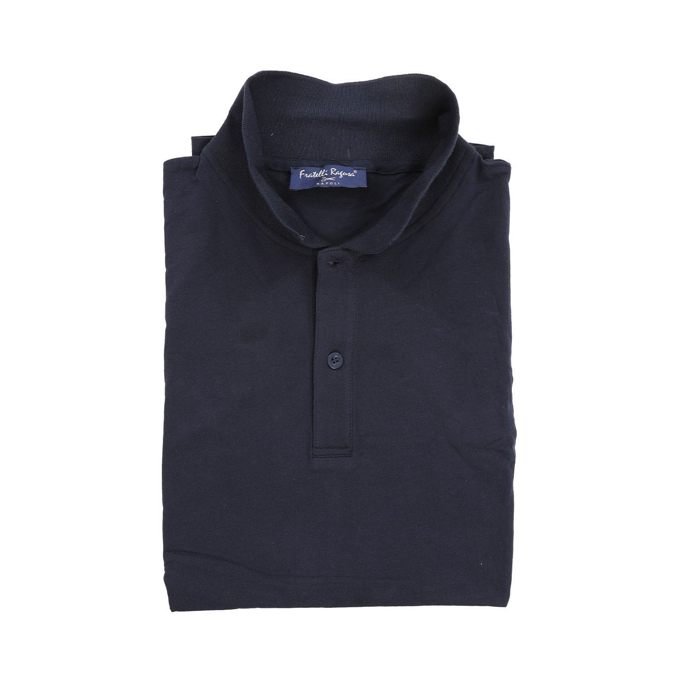 Polo blu realizzata in cotone collo con chiusura a bottoni. Orli a coste.