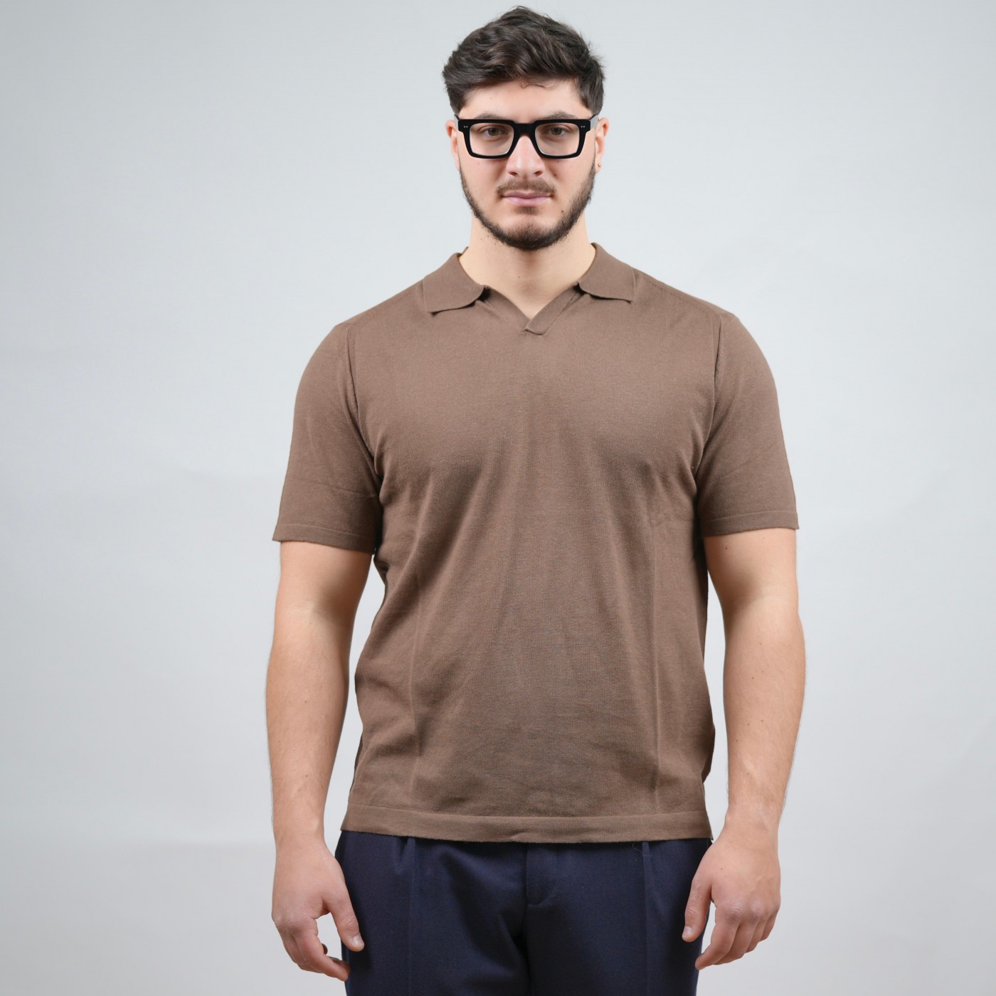 Elegante e raffinata, questa polo rappresenta il perfetto equilibrio tra stile casual e sartorialità italiana. Realizzata interamente in puro cotone di alta qualità, si distingue per la sua maglia leggera e traspirante, ideale per la stagione estiva. Il design pulito con scollo a V senza bottoni dona un tocco moderno e sofisticato a un classico intramontabile. Prodotta con orgoglio in Italia, è disponibile in una ricercata palette di colori naturali: blu, beige, moro ed écru. Un capo versatile, perfetto da abbinare sia a un pantalone chino per l'ufficio, sia a un denim per il tempo libero.